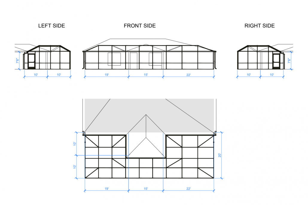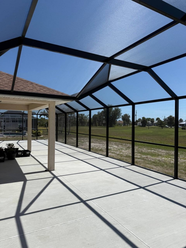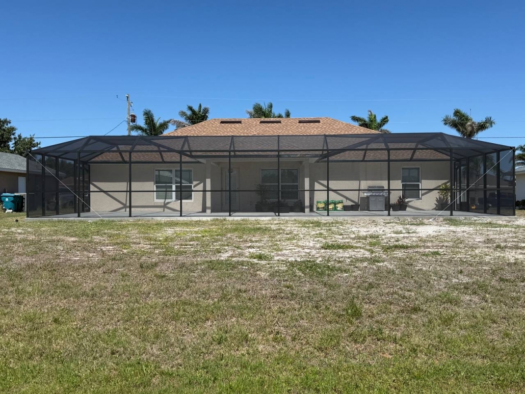 The main goal was to create a new patio enclosure that complemented design of the house. The property featured a protruding porch with its own roofline, which required a customized solution to ensure the cage blended naturally into the home’s structure. At the same time, the enclosure needed to be strong, long-lasting, and resistant to Florida’s challenging weather.