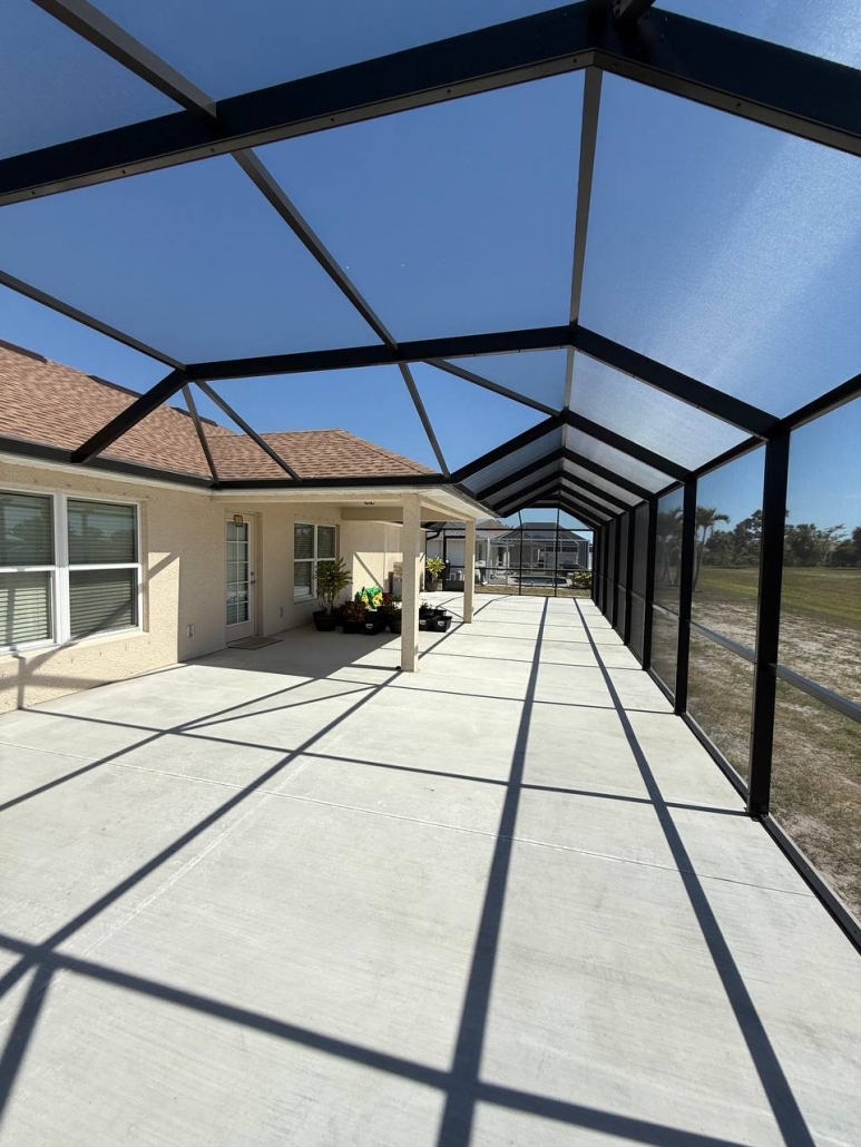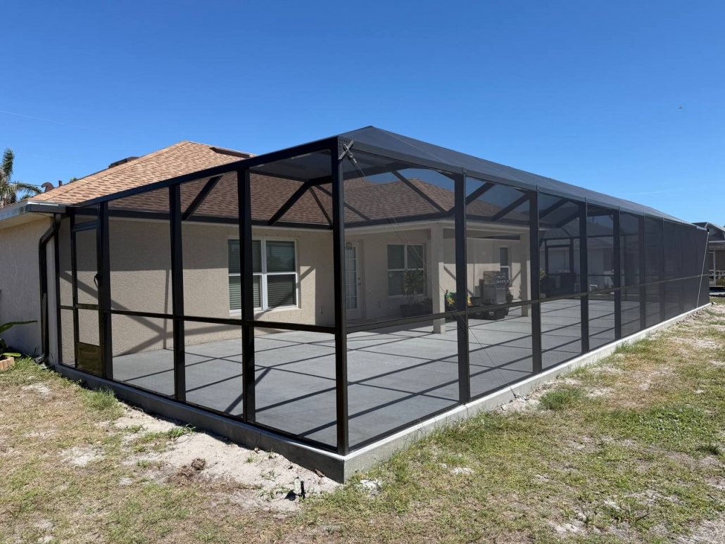 A new custom patio enclosure was designed and built in Rotonda West from the ground up. The homeowner wanted a structure that would look like a natural continuation of the house while offering a long-lasting and low-maintenance outdoor space.