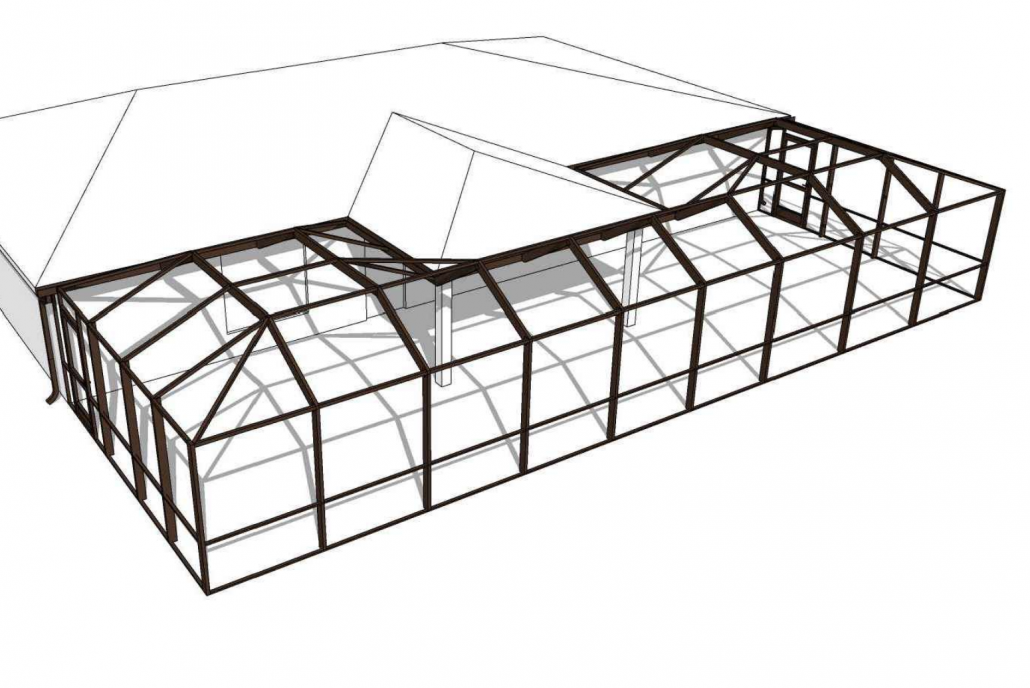 The roof design was the most distinctive part of this project. By combining a mansard roof with a gable section, we were able to adapt to the home’s layout while keeping the enclosure visually balanced.