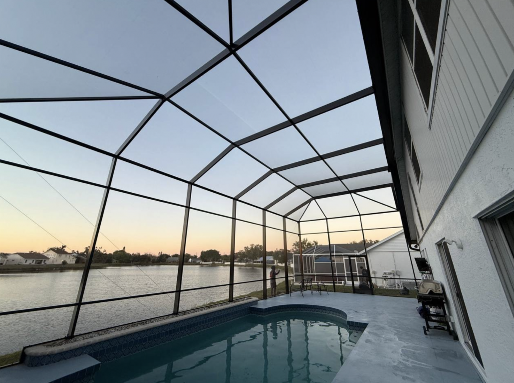 Before and After: seamless two-story pool enclosure installation in Bradenton