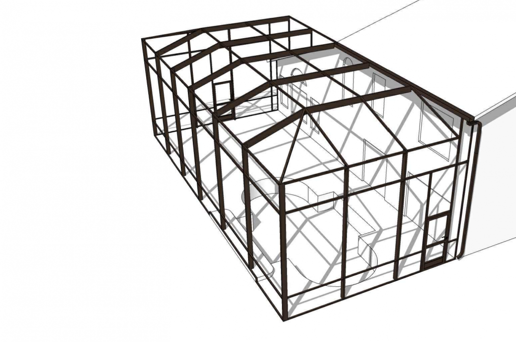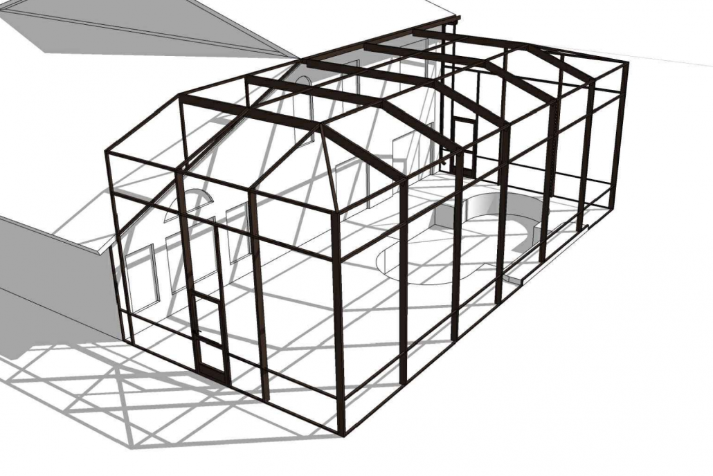 The client’s main request was to make sure the enclosure didn’t look like a separate add-on, but rather an organic continuation of the house. To achieve this, we designed a customized roof system:
