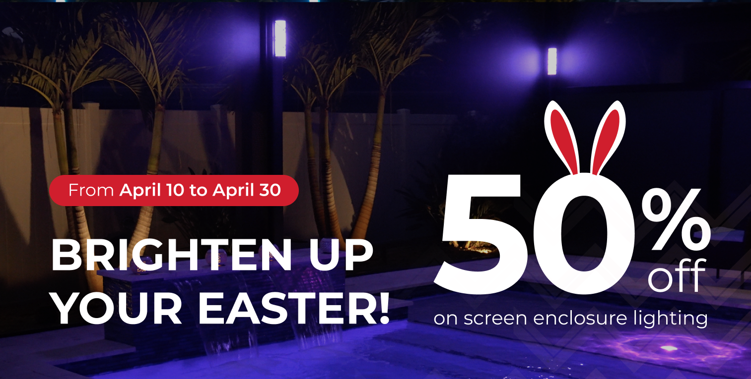 This Easter season, we’re lighting things up — literally! Enjoy an exclusive 50% discount on all lighting systems for pool and patio enclosures.