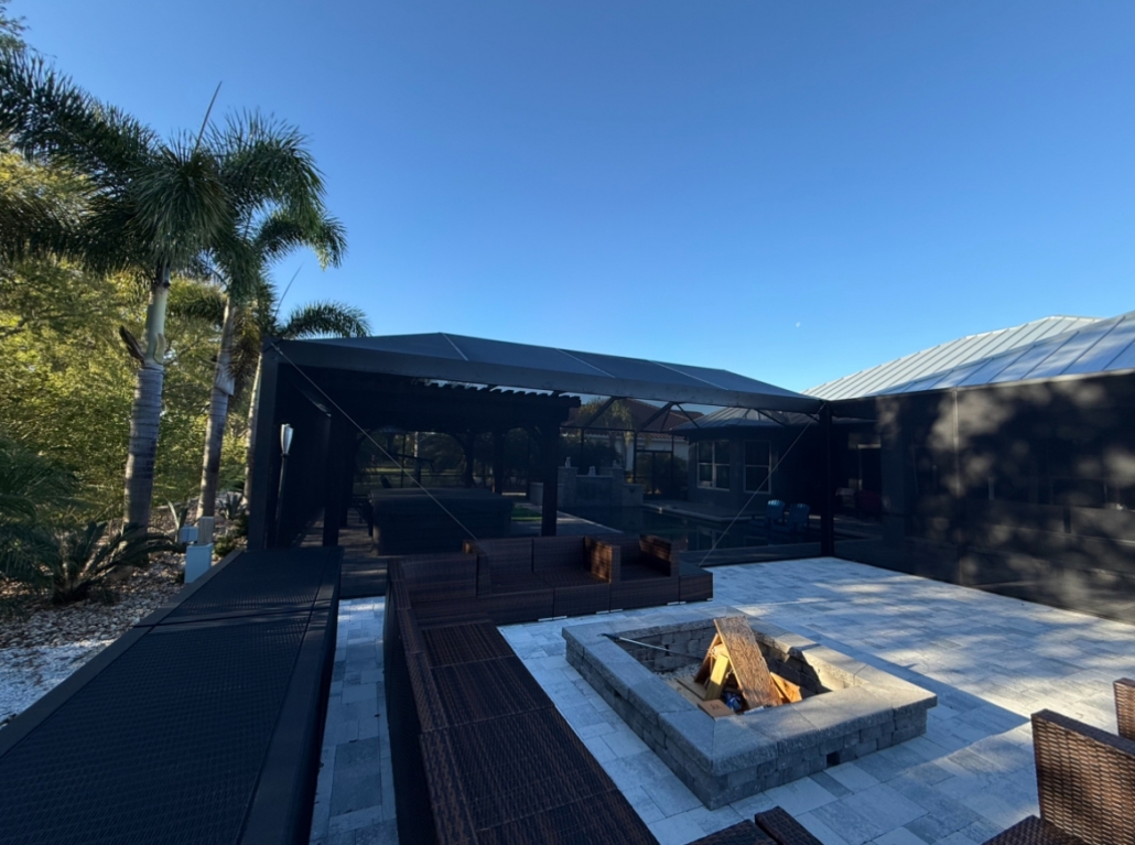 5. Installation of the New Pool Enclosure – assembled the frame, secured Super Screen 17/20, installed the 7” Super Gutter, doors, and mansard roof.