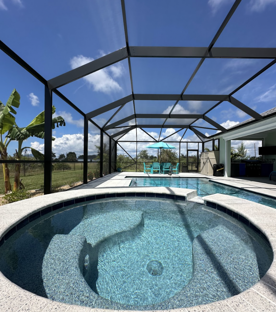 The new pool cage became a seamless addition to the house, enhancing its appearance and practicality. The added pet doors made life easier for the client and their dogs. Our team’s attention to detail and dedication to customer satisfaction ensured that the project met every expectation, providing a strong, beautiful, and functional enclosure that matched the client’s vision. The positive feedback we received and the client’s willingness to share their experience on video reinforced our commitment to delivering personalized solutions. We are proud to have completed a project that showcases our capability to tackle complex requirements and create structures that perfectly complement our clients’ homes.